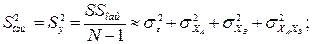 В рассматриваемом случае (модель (4.47)) оценки общей дисперсии, как и ранее, можно получить из основного тождества ДА. Однако следует подчеркнуть, что в двухфакторном ДА, в отличие от однофакторного, общая сумма квадратов отклонений наблюдений