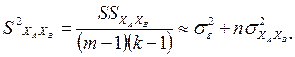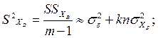 – оценку дисперсии рассеяния внутри ячеек, то есть оценку остаточной дисперсии, которая является средневзвешенной оценкой дисперсии по всем km сериям наблюдений с числом степеней свободы: