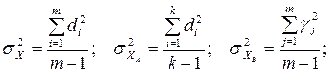 Зная суммы квадратов отклонений, определим оценки соответствующих дисперсий: