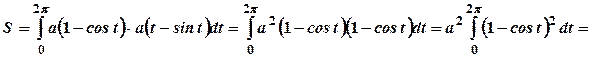 Таким чином, площа однієї арки циклоїди втричі більше площі кола, що котиться.