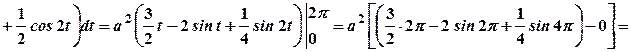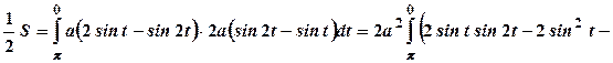 Крива симетрична відносно осі . Обчислимо половину площі і подвоємо результат. Точкам та відповідають значення параметрів .