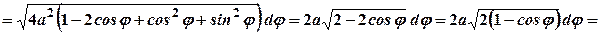 Довжину дуги обчислимо за формулою (3.10). Для цього знайдемо диференціал дуги .