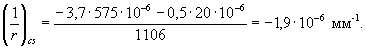 При остывании балки возникает кривизна от неравномерной усадки бетона по высоте сечения. Значение коэффициента температурной усадки тяжелого бетона на силикатном заполнителе принимаем по табл. 2.5. При температуре холодной грани 20 °С αcs = 0,5·10-6 °С-1. Температуру бетона нагреваемой грани при пожаре согласно п. 5.27 принимаем 575 °С αcs = -3,8·10-6 °С-1. Знак «минус» свидетельствует о том, что при остывании на нагреваемой поверхности останутся деформации расширения и температурная кривизна от усадки бетона должна суммироваться с кривизной от нагрузки согласно (7.39).