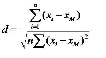 где x i и xМ - значения i -го и среднего результатов выборочной дисперсии.