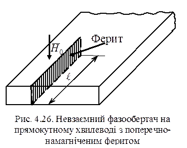 Припускається, що по прямокутному хвилеводу роз-повсюджується хвиля Н10. Феритова пластина зсунута вбік від осі хвилеводу. Теорія розповсюдження хвилі через такий фазообертач показує, що для прямої та зворотної хвиль коефіцієнт фази буде різний