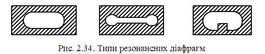 Власна (резонансна) частота діафрагми залежить від форми та розмірів її вікна (рис. 2.34).