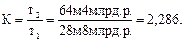 где К – коэффициент сравнения абсолютных показателей; Пример. Общий объем реализации продукции в отчётном периоде по двум предприятиям АПК составил: в первом – 28 млрд. руб., во втором 64 млрд. руб. Необходимо сравнить (сопоставить) эти предприятия по объему реализации продукции. При решении этой задачи рассуждаем так: поскольку второе предприятие реализовало больше продукции, то первое предприятие целесообразно принять за базу сравнения. Тогда расчёт относительного показателя сравнения по формуле 3.6 выглядит следующем образом: