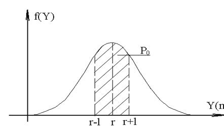 где: n – номер детали; r – среднее значение размера детали; ± l – допуски на размер детали. Так как y(n) являются случайной величиной, то она имеет свой закон распределения f(y). Пусть Р0 – удельный вес годных по техническим условиям изделий, равно вероятности того, что изготовленная деталь попадёт в интервал заданной (5.2) при отсутствии у станка информационно-управляющей системы.