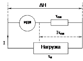 Рис.5.5. Информационная цепь. t – информационное сопротивление всей цепи. t = tн+ tвн ИДЛ – информационно-движущая логика источника. I – информационный ток в цепи нагрузка; tвн – внутреннее сопротивление, определяется временем принятия самого решения;