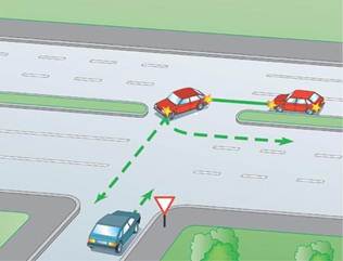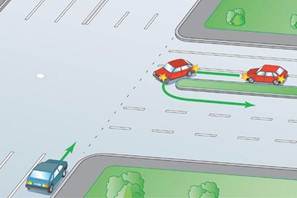 Рис. 27. Правая сторона дорог на перекрестке Следовательно, разворот в изображенных на рисунке 26 ситуациях, выполненный по правилам, должен выглядеть совсем по-другому (рис. 28 а и б).