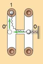 Рис. 34. Первая передача Первая передача включается следующим образом. Сначала, из нейтрального положения (рис. 34, поз. "0"), преодолевая усилие пружины, шарик надо перевести налево в соседний коридор и слегка упереться в стенку (рис. 34, поз. 0'). Затем Вы передвигаете шарик вперед вдоль стенки левого коридора. Достигнув края "ямки" в конце этого коридора, шарик благополучно сваливается в эту "ямку", и у Вас получается – первая передача. Несмотря на усилие растянутой пружины "ямка" в состоянии удерживать шарик в этом положении до тех пор, пока Вам не понадобится другая передача. Еще раз о том, как включить первую передачу. Надо сделать два конкретных движения: 1. Налево – от нейтрального положения до стенки левого коридора, без "дикого" усилия и попытки проломить стенку; 2. Вперед – вдоль стенки левого коридора до падения шарика в "ямку" первой передачи в конце коридора. Теперь о том, как выключить первую передачу. Если учесть, что пружина сейчас находится в растянутом состоянии, то достаточно лишь слегка подтолкнуть шарик из "ямки" назад. А дальше пружина сама проведет шарик по двум коридорам и поставит его в исходное нейтральное положение между "ямками" третьей и четвертой передачи. Иными словами, выключается первая передача – одним конкретным, коротким, легким движением кисти руки назад. Таким образом, мы сейчас с Вами благополучно включили и выключили первую передачу. Дальше будет совсем несложно, надо только постоянно помнить о пружине и коридорах.