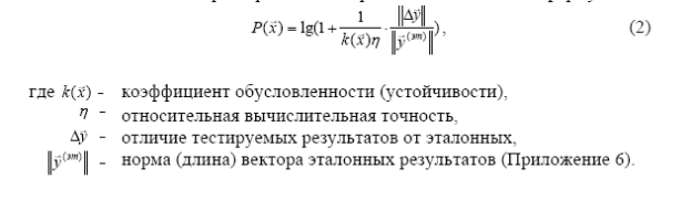 Погрешность ПО представляет собой отличие результатов, полученных с помощью испытываемого (тестируемого) ПО, от результатов, полученных при тех же условиях эталонным ПО. При этом под эталонным понимается ПО, отвечающее наивысшим требованиям к его точностным и функциональным характеристикам, подтвержденным (в ряде случаев независимыми методами) при его неоднократном тестировании. Критерии отнесения ПО к эталонному условны и при проведении аттестации ПО СИ являются предметом соглашения между заказчиками аттестации и ее исполнителями. В качестве эталонного может быть использовано аттестованное ПО. К основным источниками погрешностей ПО относятся: - программные ошибки вследствие неправильной записи исходного текста программы на выбранном языке программирования, а также ошибки трансляции программы в объектный код; - алгоритмические ошибки, связанные с неполной или ошибочной формулировкой необходимых условий решения; - применение неустойчивых алгоритмов при решении плохо обусловленных* измерительных задач; - ошибки программного преобразования входных данных перед обработкой и ошибки обратной процедуры, если она проводится; - ошибки округления и др. Порядок проведения испытаний (тестирования) ПО определяется тестовым заданием и может включать в себя: - анализ ПО и его алгоритмов, выбор контролируемых параметров, характеристик и свойств; - определение методов испытаний (тестирования) в соответствии с выбранной жесткостью испытаний; - определение критериев оценки погрешности, характеристик и параметров ПО; - выбор (или разработка) эталонного ПО; - выбор (определение) исходных данных и/или их получение методом генерации или какими-либо другими методами; - получение результатов u1086 обработки исходных данных в испытываемом (тестируемом) ПО (получение тестовых результатов); - получение оценки погрешности ПО посредством обработки результатов испытаний (тестирования) (сравнения тестовых результатов с эталонными); - дополнительные исследования свойств, параметров и характеристик используемых алгоритмов (адекватность измерительной задаче, область устойчивости, время, затрачиваемое на обработку результатов измерений и т.п.). Основными методами, применяемыми при оценке погрешности ПО, являются: * Обусловленность является мерой чувствительности решения к изменениям входных данных. Хорошо обусловленная задача обладает свойством малого изменения решения при малом же изменении входных данных, в то время как плохо обусловленная задача при тех же условиях повлечет за собой существенные изменения решения. - сравнительные испытания с применением эталонного (аттестованного) ПО; - в отсутствие эталонного (аттестованного) ПО сравнительные испытания с использованием моделей исходных данных или с применением метода генерации эталонных данных; - испытания на основе исходного кода ПО, а также комбинации указанных методов. Метод оценки погрешности ПО выбирают с учетом наличия или возможности разработки того или иного вида эталонного ПО, а также возможности применения указанных методов в каждом конкретном случае. При низкой/средней жесткости, испытания проводятся с применением одного из методов сравнительных испытаний. При высокой жесткости испытания проводятся на основе исходного кода ПО. Сравнительные испытания с применением