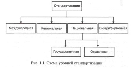 Большинство процессов разработки программного обеспечения — это процессы решения некоторых задач. Внешнее проектирование сводится к решению такой задачи: «Переведите множество целей системы во внешние спецификации», где цели — данные, а внешние спецификации — неизвестные. В задаче проектирования логики модуля даны внешние спецификации модуля, а неизвестное — текст его программы. Отладка — это задача на построение исправления ошибки (неизвестное) по описанию ее симптомов (данные). Стандартизация — это деятельность, направленная на разработку и установление требований, норм, правил, характеристик, как обязательных для выполнения, так и рекомендуемых, обеспечивающая право потребителя на приобретение товаров надлежащего качества, а также право на безопасность и комфортность труда. Цель стандартизации — достижение оптимальной степени упорядочения в той или иной области посредством широкого и многократного использования установленных положений, требований, норм для решения реально существующих, планируемых или потенциальных задач. Основными результатами деятельности по стандартизации должны быть повышение степени соответствия продукта (услуги), процессов их функциональному назначению, устранение технических барьеров в международном товарообмене, содействие научно-техническому прогрессу и сотрудничеству в различных областях. Стандартизация связана с такими понятиями, как объект стандартизации и область стандартизации. Объектом стандартизации обычно называют продукцию, процесс, услугу, для которых разрабатывают те или иные требования, характеристики, параметры, правила и т.п. Стандартизация может касаться либо объекта в целом, либо его отдельных составляющих (характеристик). Областью стандартизации называют совокупность взаимосвязанных объектов стандартизации. Стандартизация осуществляется на разных уровнях. Уровень стандартизации зависит от того, участники какого географического, экономического, политического региона мира принимают стандарт. Если участие в стандартизации открыто для соответствующих органов любой страны, то это международная стандартизация. Региональная стандартизация — деятельность, открытая только для соответствующих органов государств одного географического, политического или экономического региона. Региональная и международная стандартизация осуществляется специалистами стран, представленных в соответствующих региональных и международных организациях (рис. 1.1).