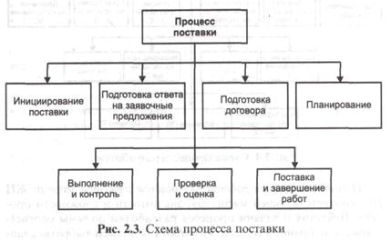 Подготовкаи корректировка договоравключают следующие задачи: • определение заказчиком процедуры выбора поставщика, включающей критерии оценки предложений возможных поставщиков; • выбор конкретного поставщика на основе анализа предложений; • подготовку и заключение договора с поставщиком; • внесение изменений (при необходимости) в договор в процессе Надзор задеятельностью поставщика осуществляется в соответствии с действиями, предусмотренными в процессах совместной оценки и аудита. В процессе приемки подготавливаются и выполняются необходимые тесты. Завершение работ по договору осуществляется в случае удовлетворения всех условий приемки. Процесс поставки (supply process) охватывает действия и задачи, выполняемые поставщиком, который снабжает заказчика программным продуктом или услугой (рис. 2.3).