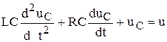Рис. 4.6. Переходные функции инерционных звеньев второго порядка Примеры. К инерционным звеньям второго порядка относятся элементы, способные запасать потенциальную и кинетическую энергию и преобразовывать их одну в другую. Такими возможностями обладают: электрические R-L-С контуры; электромеханические устройства, например, двигатели, у которых кинетическая энергия запасается в якоре, а электромагнитная (потенциальная) в якорной цепи; механические элементы, обладающие массой, упругостью и вязким трением и т. д. Пример 4.2. Для R-L-Cконтура справедливо уравнение