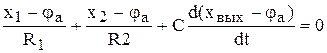 Пример 4.4. Многие математические операции эффективно выполняются электронными схемами на основе операционных усилителей. Пример такой схемы дан на рис. 4.8,б. Для этих усилителей характерно три свойства: 1) усилитель имеет исключительно большой коэффициент усиления