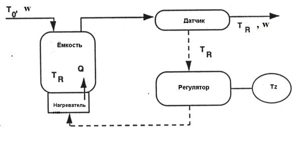 Рисунок 2.1 – Принципиальная схема управления температурой в ёмкости Математическое описание теплового баланса для ёмкости имеет вид: