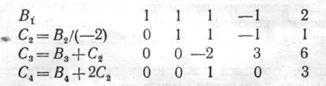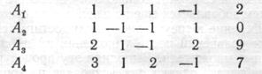 Для удобства уравнения обозначим буквами и будем выписывать только коэффициенты при неизвестных и свободные члены уравнений. Тогда исходная система примет вид: