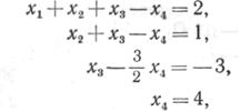 откуда, подставляя значение x4 в 3-е уравнение, х3 — во 2-е и т. д., находим решение системы уравнений