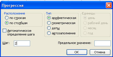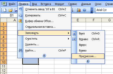 4. В меню «Правка» выбрать категорию «Заполнить», а в последующем выпадающем меня выбрать «Прогрессия».
