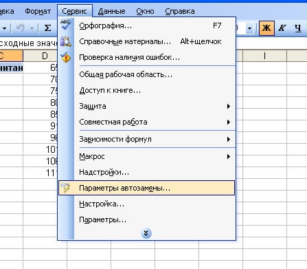 9. Выполнить команду Параметры (Options) меню Сервис (Tools). В раскрывающемся списке выбрать «Параметры автозамены».