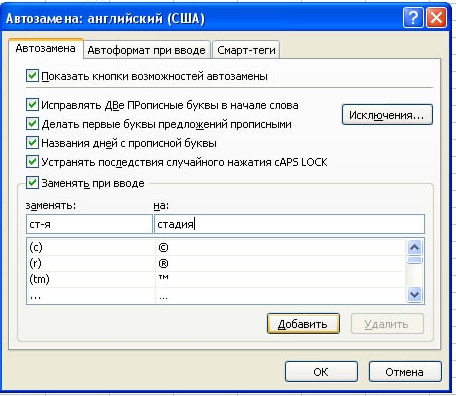 10. В раскрывающемся окне ввести «ст-я» в поле после «заменять» и «стадия» в поле после «на:».
