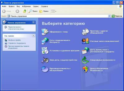 4.1 Панель управління Основні налаштування Windows XP зосереджені в спеціальній папці, яка називається Панель управління (Control Panel). Щоб відкрити цю папку, слід вибрати однойменну команду в головному меню Windows. Описуючи різні можливості операційної системи, ми не раз використовували панель управління. У цьому розділі ми підведемо підсумок у використанні цієї папки при налаштуванні різних можливостей Windows. Панель управління може відображуватися в одному з двох різних режимів. Перший режим, використовуваний за умовчанням, групує значки різних налаштувань (мал.16). При цьому зовнішній вигляд панелі управління схожий на web-сторінку. Переходячи по засланнях, ви вибираєте групу налаштувань і знаходите потрібну програму.