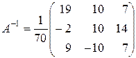 Для того, чтобы найти решение системы методом обратной матрицы, необходимо: 1) проверить невырожденность матрицы 2) найти 3) вычислить значения неизвестных по формуле (9). Пример 7.4 Решить систему методом обратной матрицы