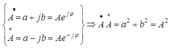 Произведение комплексного числа А на сопряженное А* равно квадрату модуля. Изобразим вращающийся вектор в комплексной плоскости. Конец вектора определяет некоторую точку, т.е комплексное число.