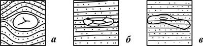Рис. 23. Концреции: а – сингенетические; б – диагенетические; в – эпигенетические