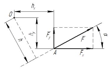 Не всегда модуль момента силы относительно центра легко найти. Рассмотрим следующий пример (рис.4.5). Сила приложена в точке А. Необходимо найти момент силы относительно центра О. Однако определить плечо h зная только координаты точек А и О затруднительно. Поэтому воспользуемся теоремой Вариньона.