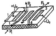 У СВ оптичного діапазону обмін енергіями хвиль між двома світловодами може виникнути або за рахунок поля, випромінюваного з світловоду, або за рахунок поля поверхневих хвиль світловодів. У першому випадку для створення поля випромінювання світловод повинен мати неоднорідності, викликаючи випромінювання при поширенні хвили по світловоду. У другому випадку світловоди зближуватися доти –поки кожний з них не опинитися у поле поверхневий хвилі іншого світловоду. Останній випадок використовуватися на практиці частіше, оскільки у цьому випадку може забезпечити любий перехід енергії з одного світловода у інший, аж до повного. Остільки у волоконних світловодах для поширюваних хвиль поле поза оболонки практично відсутні, то для одержування зв’язку між такими світловодами частина оболонки у місце зіткнення волокон знищуватися шляхом сточування або розплавлення. У останнім випадку за рахунок розплавлення оболонок забезпечуватися міцність з’єднання волокон. На рис. 1.134 показано волоконна, а на рис. 1.135 інтегрально-оптична конструкція СВ. Для останній у роботи [41] одержані формули для потужності