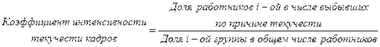 Рис.1.5. Оборот кадров Оборот по выбытию – характеризует число лиц, уволившихся из организации за данный период, сгруппированных по причинам увольнения. В зависимости от причин, он бывает необходимый и излишний (текучесть). Необходимый оборот неизбежен, имеет объективные причины (возраст, военная служба и другое). Его можно прогнозировать. Текучестьсвязана с субъективными причинами и обычно характерна для молодёжи. Нормальный уровень примерно 5% в год. Она может быть активной (уход по собственному желанию) и пассивной (увольнение из-за нарушения трудовой дисциплины). К абсолютным показателям относят: