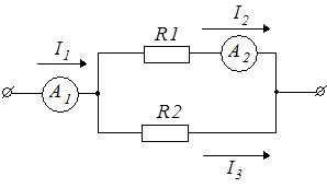 Задача № 2.2 В цепь постоянного тока по схеме, приведенной на рисунке, включены два амперметра: