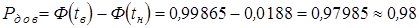 Для определения доверительной вероятности в случае несимметричного интервала воспользуемся формулой (2.28 [4]). Значение нормированной интегральной функции нормального распределения определяем по таблице №2 Приложения.