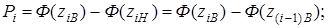 8) Воспользовавшись таблицей 2 Приложения, находим значение нормированной интегральной функции нормального распределения - 9) Используя формулу (2.28 [4]) находим теоретическое значение вероятности попадания результатов в соответствующий интервал