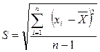 Среднеквадратическое отклонение (S) рассчитывается по формуле 2: