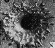 Рис. 14. Каналы в кварцевом стекле, образованные в режиме автоканализации сфокусирован ным излучением С02-лазера в непрерывном режиме (Р = 200 Вт).