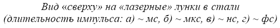 Поскольку лазерное скрайбирование в данном случае методически связано с возгонкой в непрозрачном материале отверстий, следует рассмотреть еще одно явление, имеющее непосредственное отношение к рассматриваемому вопросу. Речь идет об автоканализации лазерного излучения, позволяющей проделывать в некоторых материалах исключительно глубокие отверстия, что может представлять в некоторых случаях большой интерес. Как показано в [14], подбирая угол вхождения лазерного излучения в толщу некоторых материалов, а также расстояние от поверхности материала до фокальной плоскости лазерного объектива, можно обеспечить условия, при которых лазерный луч после схождения в фокальной плоскости больше не расходится, а распространяется в возгоняемом канале на значительное расстояние, образуя глубокое и практически цилиндрическое отверстие. Длинный канал образуется в том случае, если угол схождения луча после прохождения фокусирующей линзы достаточно мал. Чем меньше этот угол, тем глубже образующееся в материале отверстие.