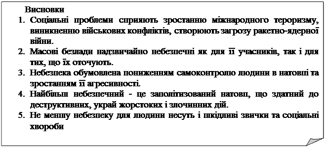 7.1 Класифікація надзвичайних ситуацій Надзвичайна ситуація (далі - НС) - порушення нормальних умов життя і діяльності людей на об'єкті або території, спричинене аварією, катастрофою, стихійним лихом чи іншою небезпечною подією, яка призвела (може призвести) до загибелі людей та (або) значних матеріальних втрат. В Україні щорічно виникають тисячі тяжких надзвичайних ситуацій природного та техногенного характеру, внаслідок яких гине велика кількість людей, а матеріальні збитки сягають кількох мільярдів гривень. Нині в багатьох областях України у зв'язку з небезпечними природними явищами, аваріями і катастрофами обстановка характеризується як дуже складна. Тенденція зростання кількості природних і, особливо, техногенних надзвичайних ситуацій, вагомість наслідків об'єктивно примушують розглядати їх як серйозну загрозу безпеці окремої людини, суспільства та навколишнього середовища, а також стабільності розвитку економіки країни. Руйнівну силу техногенних катастроф і стихійних лих у деяких випадках можна порівняти з військовими діями, а кількість постраждалих значною мірою залежить від типу, масштабів, місця і темпу розвитку ситуації, особливостей регіону і населених пунктів, що опинились в районі події, об'єктів господарської діяльності. Несподіваний розвиток подій веде до значного скорочення часу на підготовку рятувальних робіт і їх проведення.