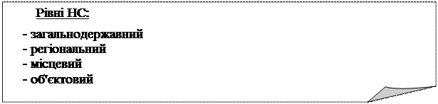 Кожний рівень системи ЦЗ має: - координуючі та постійні органи управління - систему повсякденного управління, - сили і засоби, - резерви матеріальних та фінансових ресурсів, - системи зв'язку та інформаційного забезпечення