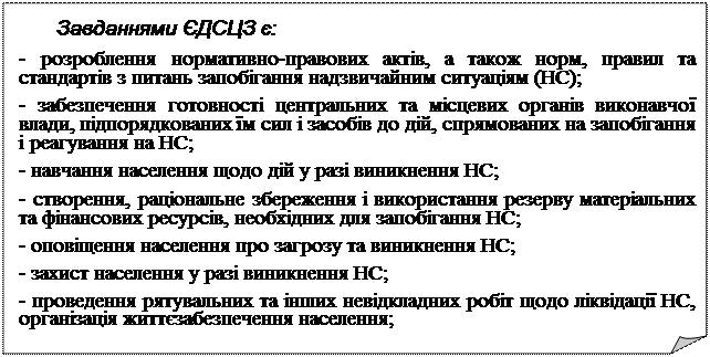 Зазначені функції запобігання надзвичайним ситуаціям техногенного та природного характеру в нашій країні виконує Єдина державна системацивільного захисту. 7.3 Єдина державна система цивільного захисту 7.3.1 Мета та склад системи цивільного захисту