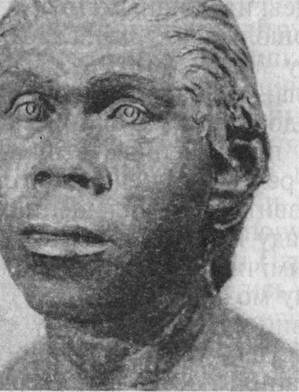 Неандерталець із Ля Шапелль-о-Сен (реконструкція М. Герасимова) Кісткові рештки палеоантропів були виявлені також на території Африки. Так, у 1921 р. в печері горба Брокен-Гілл у Замбії (колишня Північна Родезія) знайшли череп, фрагменти таза та окремі кістки нижніх кінцівок істоти, яку назвали "родезійською людиною". В її фізичному типі поєднувалися архаїчні та прогресивні риси, а саме: об'єм мозкової коробки становив 1325 см3, сильний розвиток рельєфу на потилиці і водночас дуже спадистий лоб, великий "дахоподібний" надочний валик, що за своїми розмірами та масивністю не має аналога серед інших гомінідів. Одночасно з "родезійською людиною" на півдні та сході Африканського континенту мешкали палеоантропи з виразними "сапієнтними" рисами. Численні пам'ятки давніх людей відомі на території Центральної Азії. Так, у 1938 р. в печері Тешик-Таш біля м. Байсун на півдні Узбекистану російський археолог А. Окладников розкопав кісткові рештки хлопчика-палеоантропа віком 8— 10 років. Більшість антропологів дійшли висновку, що в його морфологічній будові спостерігається переплетення рис давніх та сучасних людей. До перших належать сильний розвиток надочного рельєфу, виступання вперед середньої частини обличчя тощо, до других — структура ендокрана, кінодонтія (тобто вузька порожнина зубів) і т. ін. За розрахунками В. Бунака, об'єм мозку дорослого "тешикташця" становив би не менше 1600 см3.