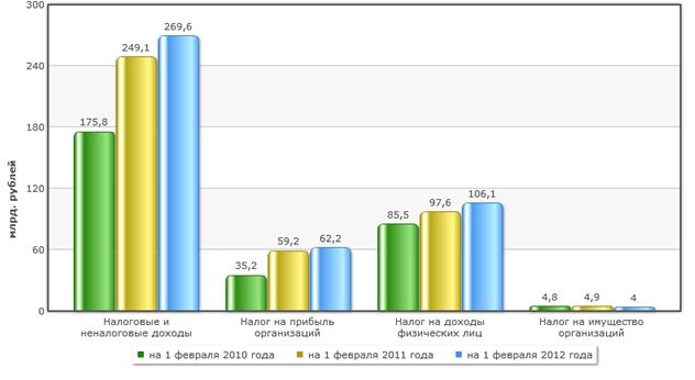 Рисунок 8 – Динамика налоговых доходов консолидированных бюджетов РФ в 2010-2012 годах