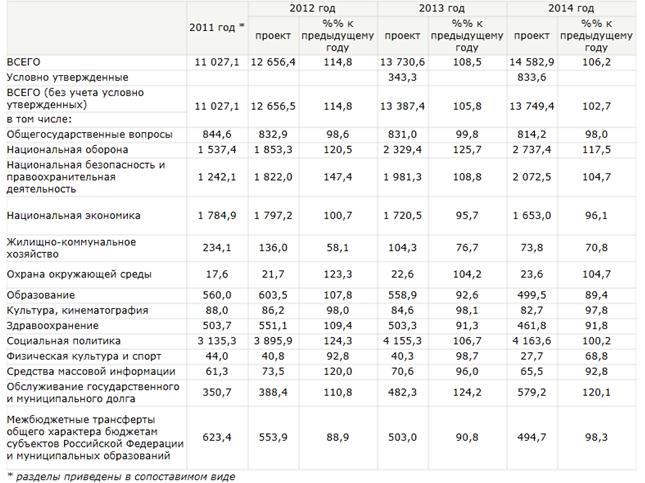 Таблица 4 – Структура расходов федерального бюджета на 2012 год, млрд.руб.