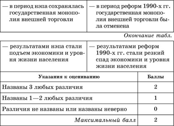 С7. Сравните проведение нэпа и экономических реформ в России в 1990-х гг. Укажите, что было общим (не менее двух характеристик), а что – различным (не менее трех различий). Примечание. Запишите ответ в форме таблицы. Во второй части таблицы могут быть приведены различия как по сопоставимым (парным) признакам, так и те черты, которые были присущи только одному из сравниваемых объектов (приведенная таблица не устанавливает обязательное количество и состав общих признаков и различий, а только показывает, как лучше оформить ответ).