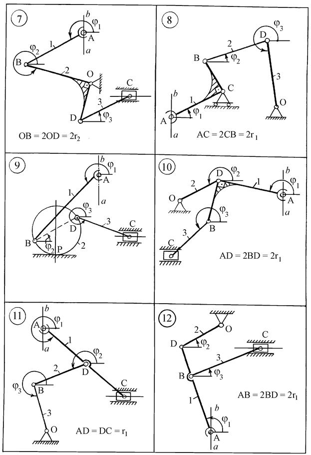 Размеры звеньев: АВ = r1 = 0,7 м, BD = r2 = 0,5 м, DC = r3 = 0,8 м, значения углов, определяющих положения звеньев манипулятора в начальный момент времени (t = 0): j1 (0) = 0,5 рад; j2 (0) = 0,3 рад; j3 (0) = 1,0 рад. Порядок расчета. Исходные соотношения для расчета получим, воспользовавшись векторным описанием геометрии механизма, расчленив его на две группы звеньев (рис. К4б и рис. К4в).