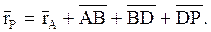 Спроецировав векторное равенство (83) на координатные оси и учитывая, что АВ = r1, BD = DP = r2, получим два скалярных уравнения: