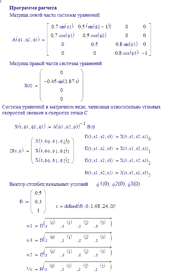 Для проведения расчетов по формулам (91) с помощью универсальной математической системы MathCAD приведем эти уравнения к стандартной матричной форме: