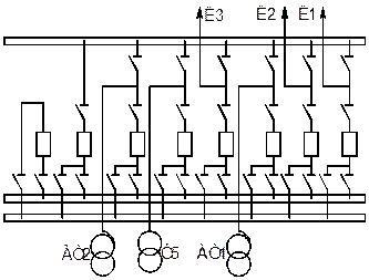 Рис. 18. Схема с двумя рабочими и обходной системами шин